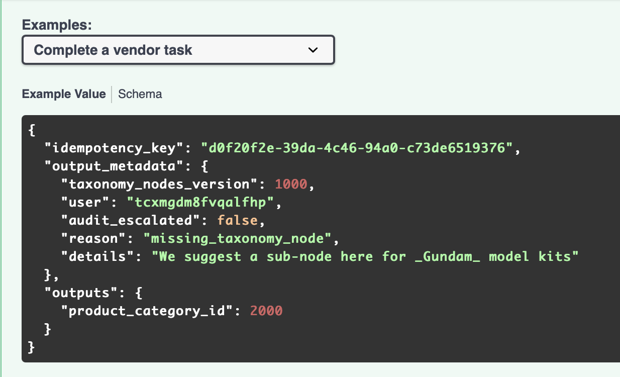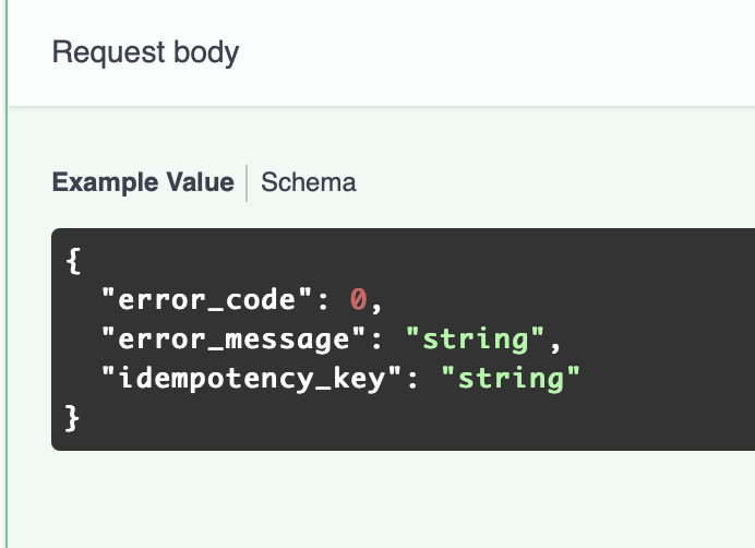 examplessupport to request bodies in Swagger. Right now our requests look like the following:They just supply the type information in the field.