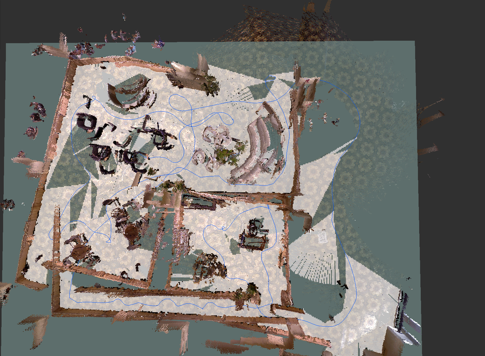 | 3D Cloud (download here: cloud.ply) | 3D Cloud + 2D Map (saved with map_server: map.pgm and map.yaml ) |