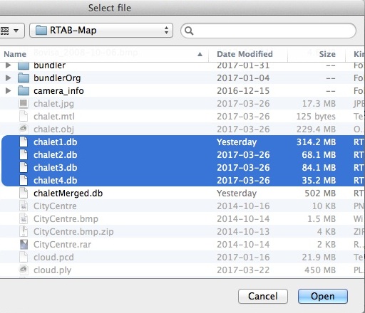 rtabmap-reprocessconsole application like this (version >=0.18 required):rtabmap-reprocess "chalet1.db;chalet2.db;chalet3.db;chalet4.db" merged.db - With gravity constraints (version >=0.19.5 required):