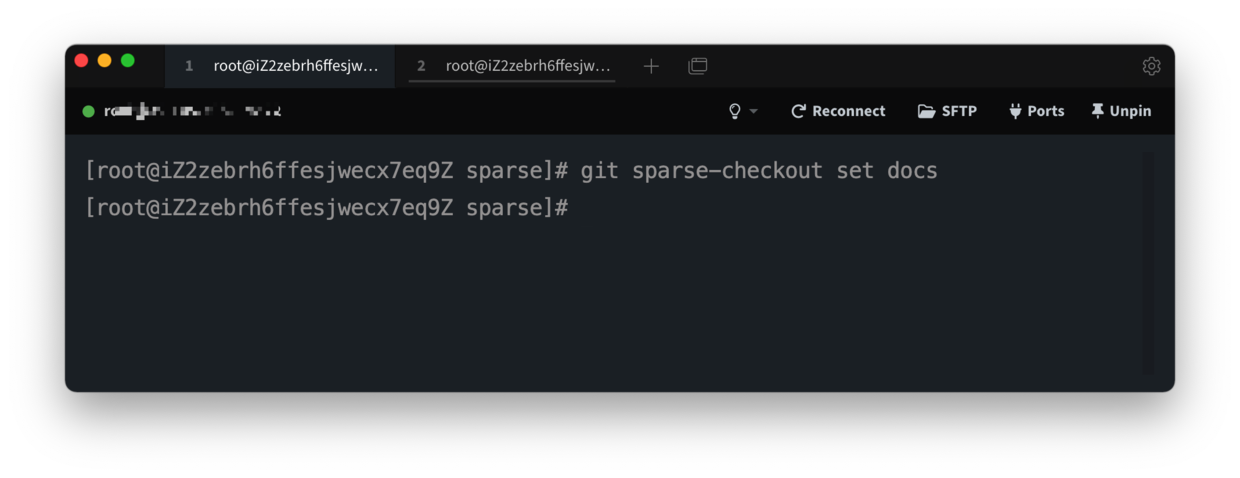 比如说,我们只想拉取 docs 目录,可以执行 git sparse-checkout set docs 命令。