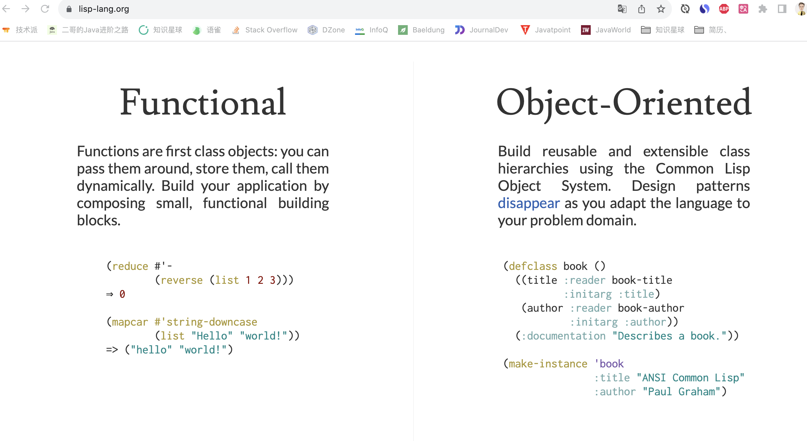Lisp 是一种函数式编程语言,我从官网上截幅图大家感受下。