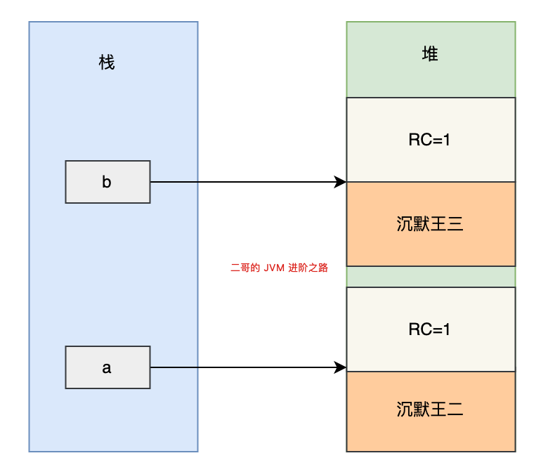 ReferenceCountingGC b = new ReferenceCountingGC("沉默王三");