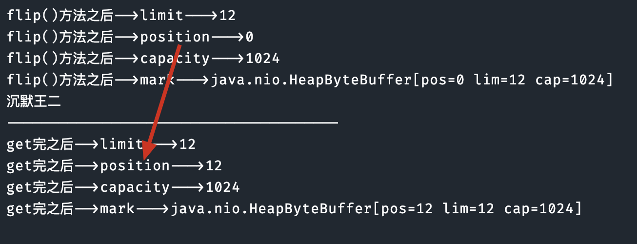 System.out.println("flip()方法之后-->position--->"+byteBuffer.position());