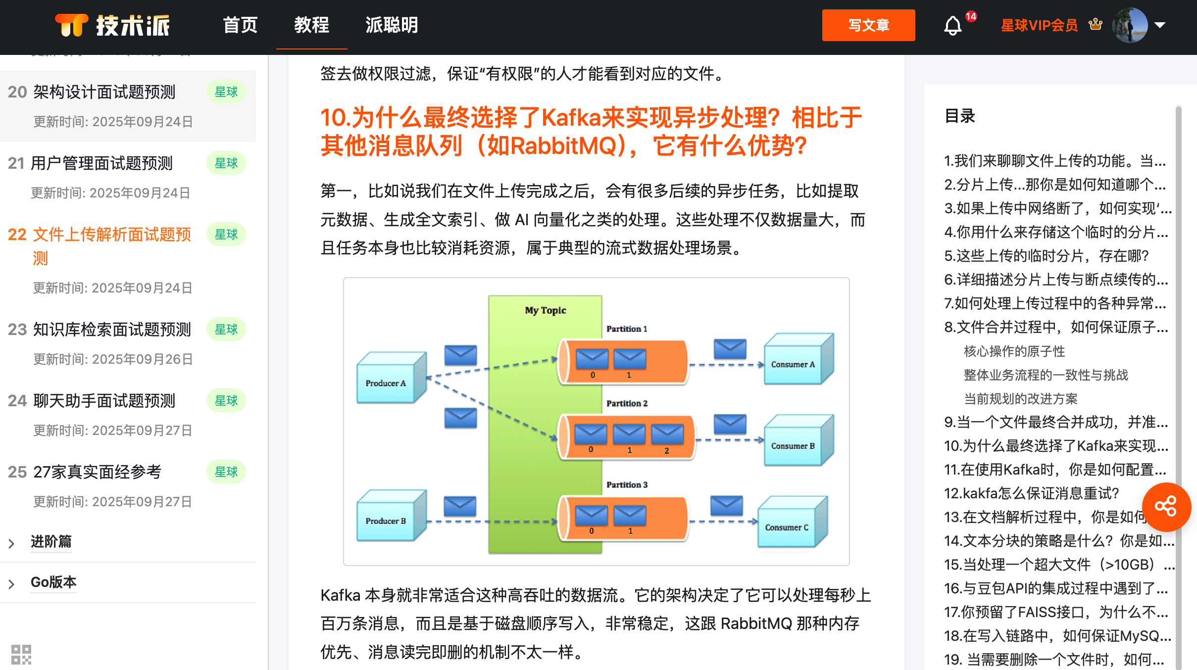 如果是日志收集和流式处理场景,Kafka 更合适,因为它天生为大数据场景设计。派聪明 RAG 项目中的文件上传后的向量化、索引构建任务,就是用的 Kafka 来做消息队列。