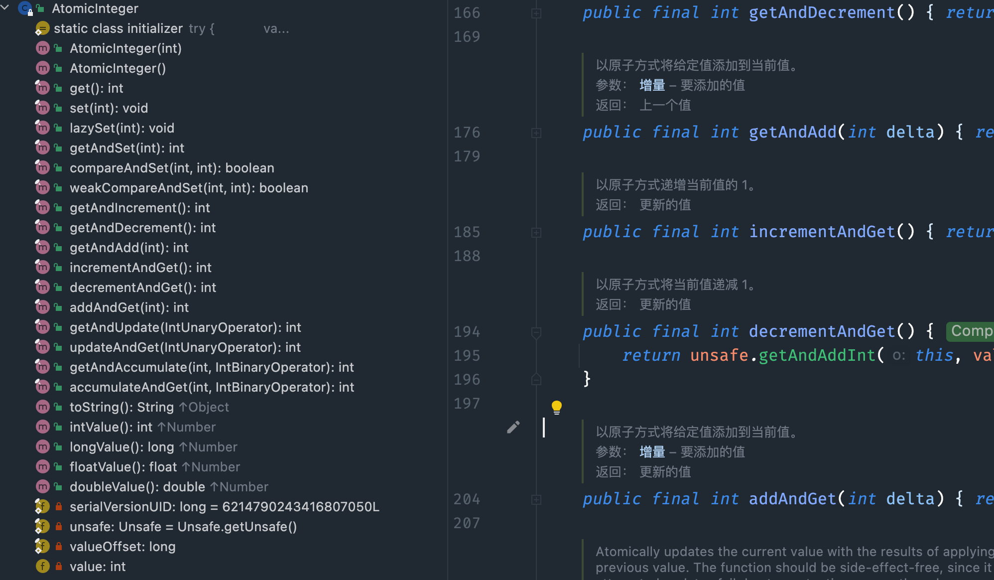 为了能够弄懂 AtomicInteger 的实现原理,以 getAndIncrement 方法为例,来看下源码:
