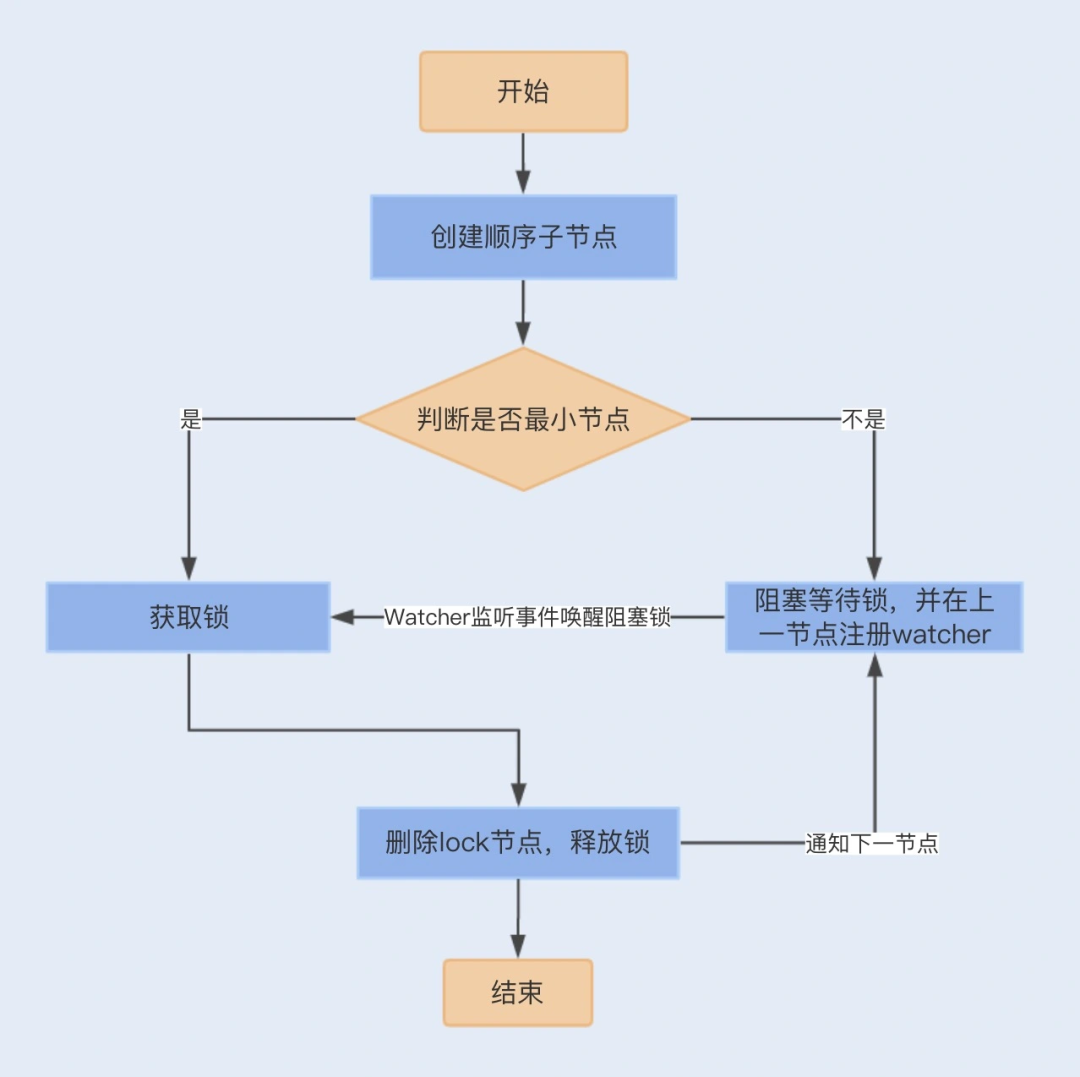 如果是则认为获得锁,执行业务代码,否则通过 watch 事件监听