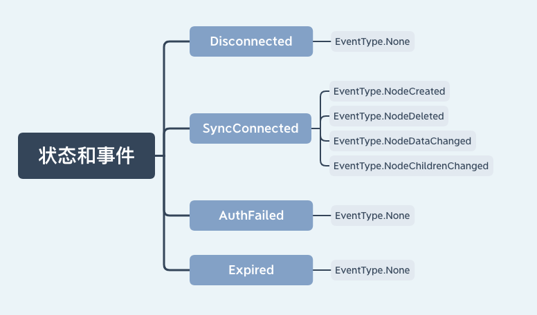 上图中列出了客户端在不同会话状态下,相应的在服务器节点所能支持的事件类型。