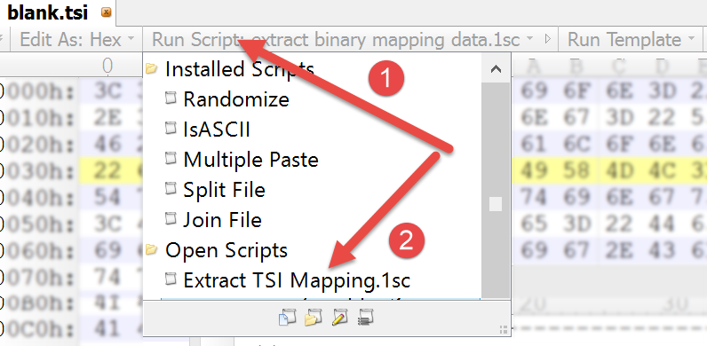 3. Run the Extract TSI Mapping.1sc script. It may take a couple of seconds to finish. Once done a new tab will automatically open Untitled1