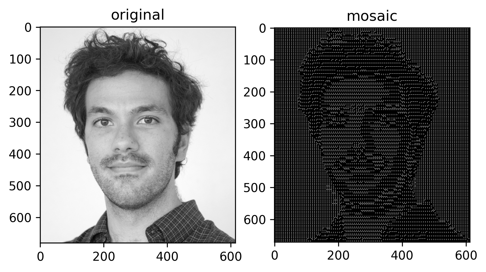 This project was inspired by the following post from Nick Loomis. The idea is to create a photomosaic built from those little 7-segment digit displays that you commonly find on microwaves, ovens, etc.