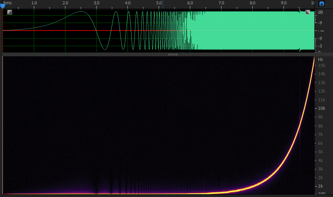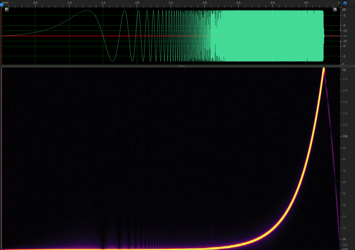 For the two bands case, 32k sample rate, we test with a 0~20kHz swept-sine signal. Below is the input signal: