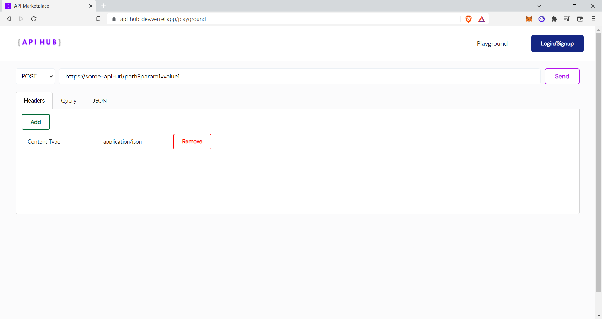 - A Playground is created for users to test an api by passing headers, body , and query paramters along with the api url.