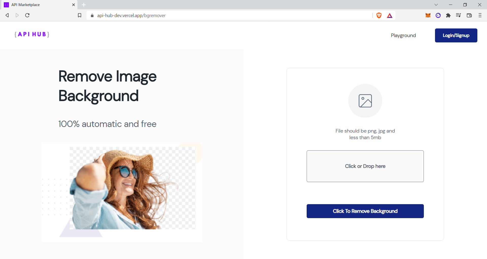 - Background Remover application is presented as an example for other users to create an web app by taking inspiration from apis present on the explore page.