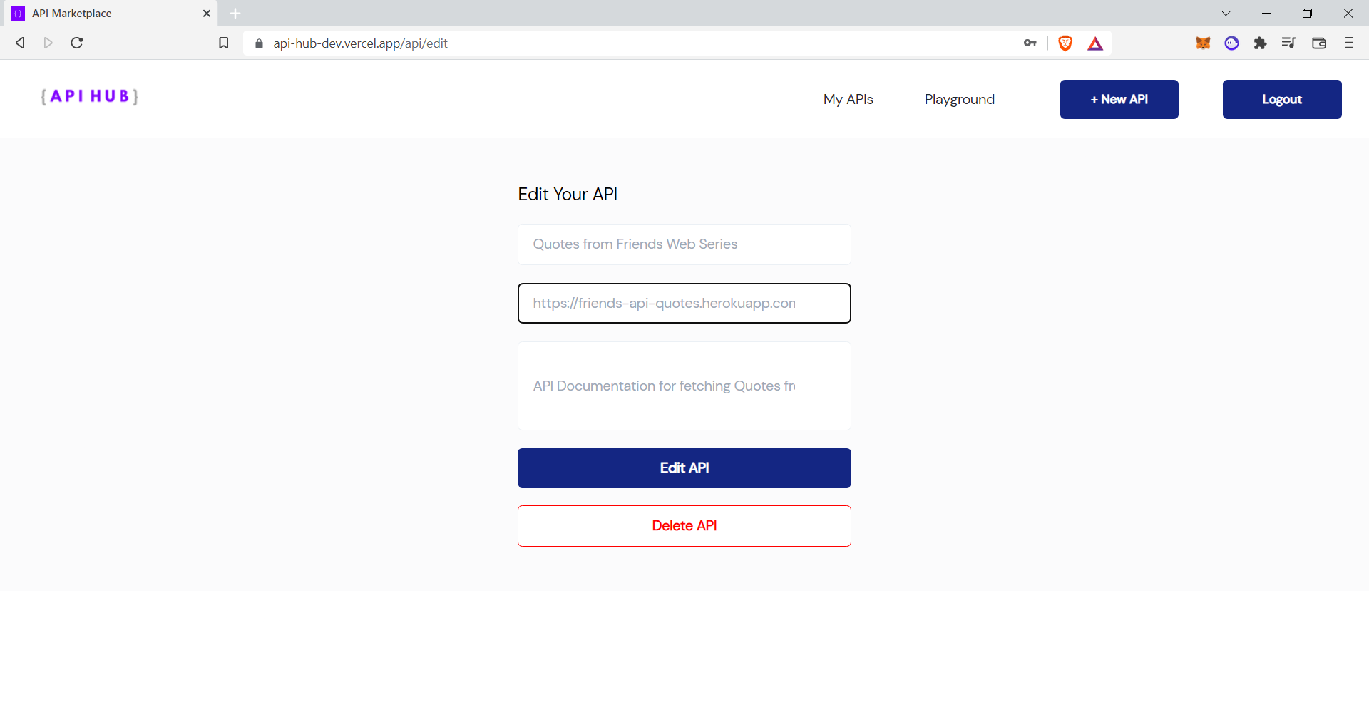 - A Hub of APIs where users can display their APIs and share it with others to use it and create a nice website on top of their APIs.