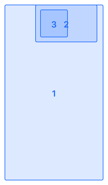 )Note how we've included a container Layout inside another container Layout, then included a third Layout inside that. The third layout (shown here with a number 3 on it), is positioned relative to its parent container Layout, using the values we've specified in its overriddenPosition property.