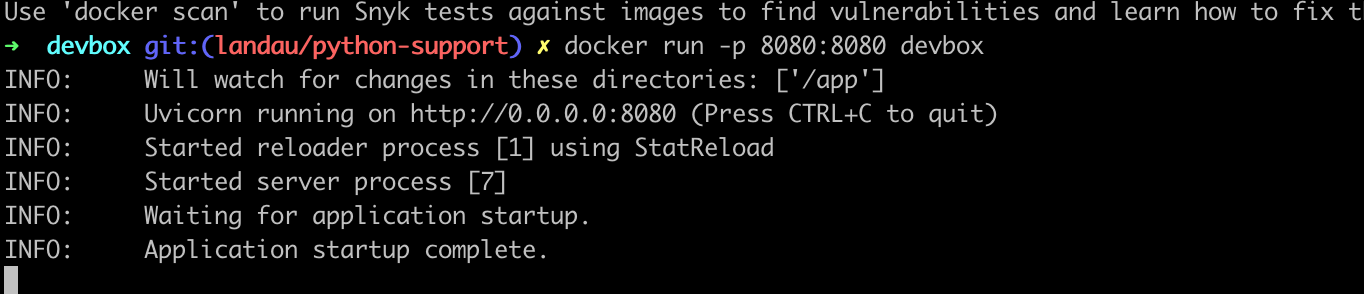 `docker run -p 8080:8080 devbox`