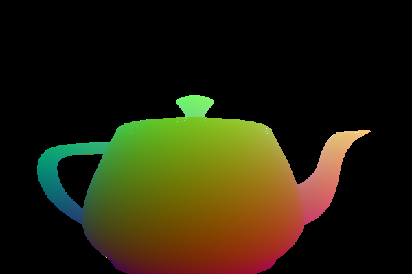 | Utah Teapot with interpolated vertex colors (example) |