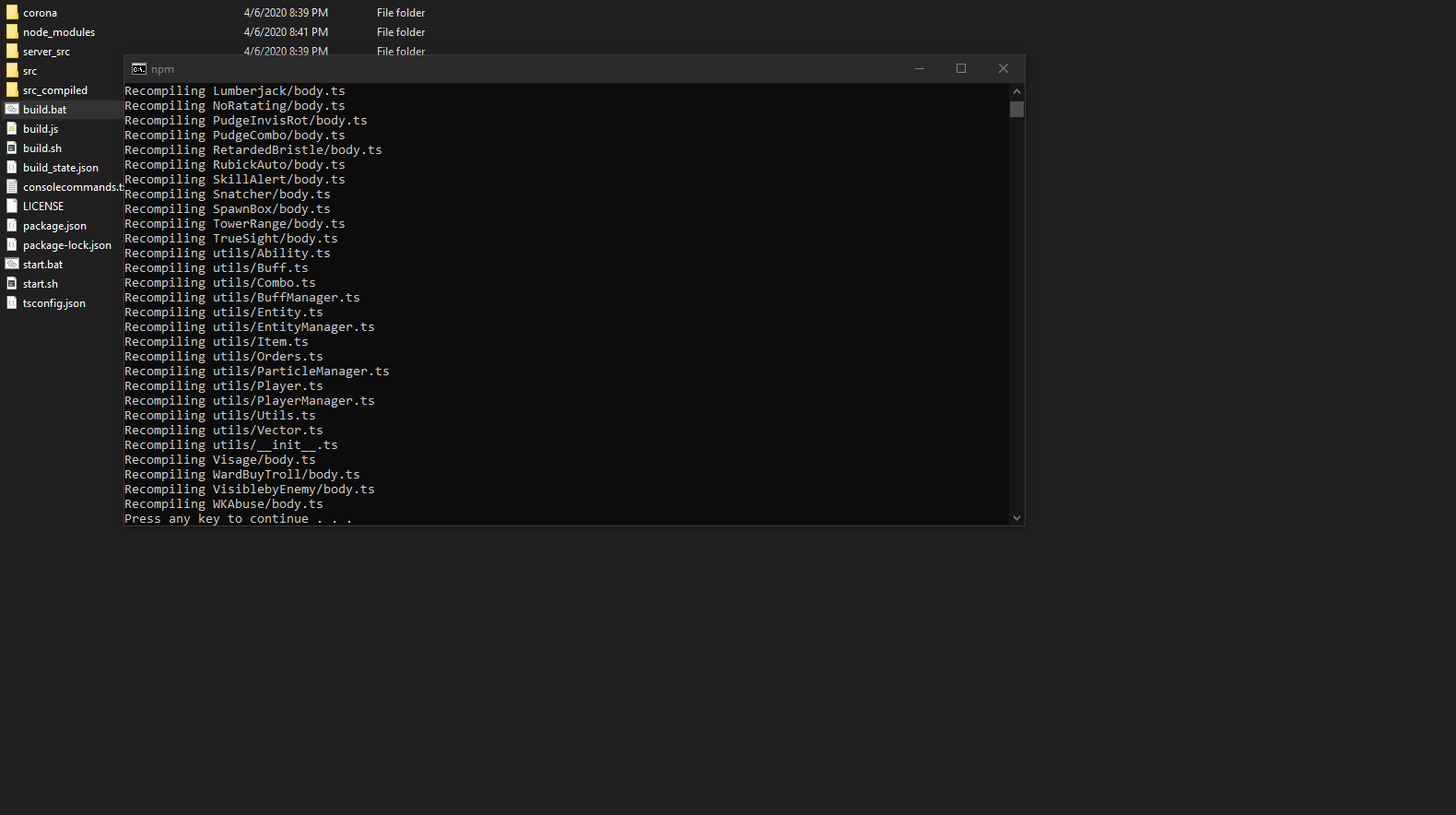 1)Open the extracted folder, make sure src, Corona.ts and dota2.d.ts are inside using Visual Studio Code