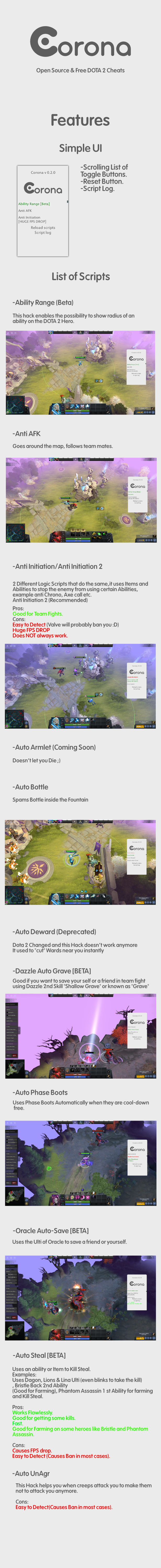 A:The scripts are not optimised for using them all of them at once, this includes Antiinitiation,AutoSteal,JugleMaphack,Last Hit.