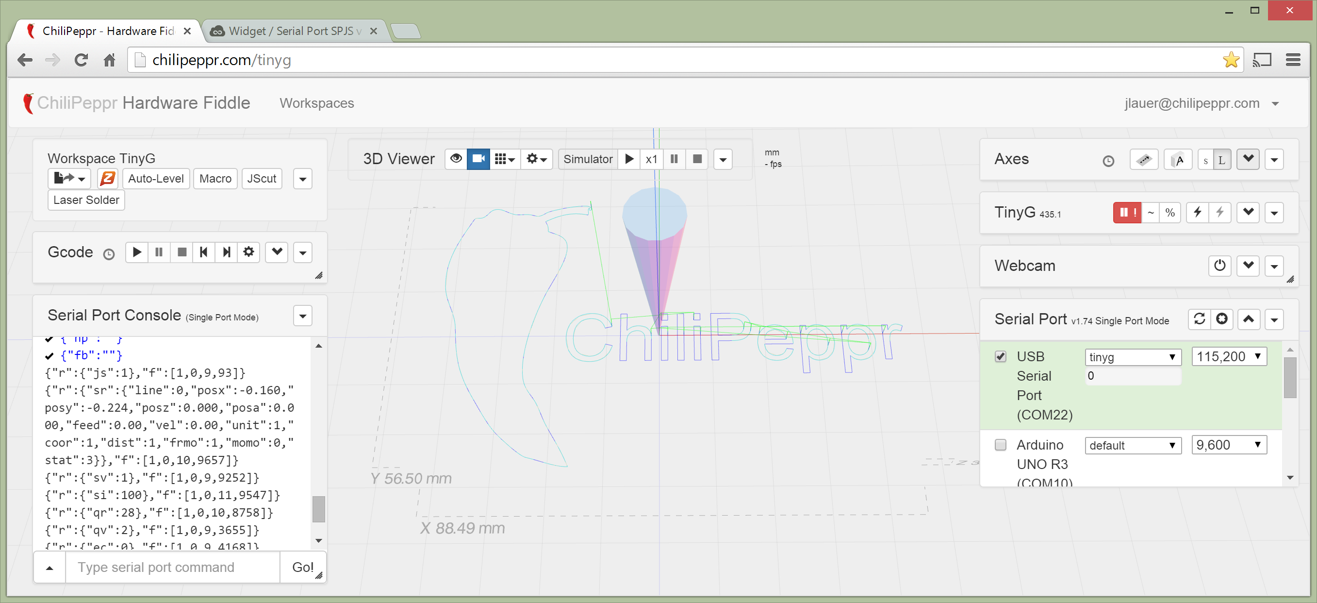 This is the Serial Port JSON Server being used inside the TinyG workspace in ChiliPeppr.