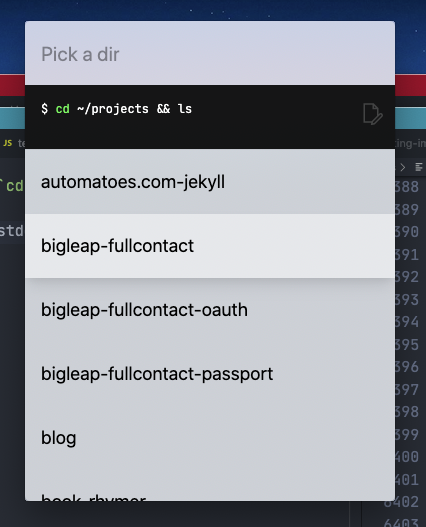 await arg("Pick a dir", stdout.split("\n"))