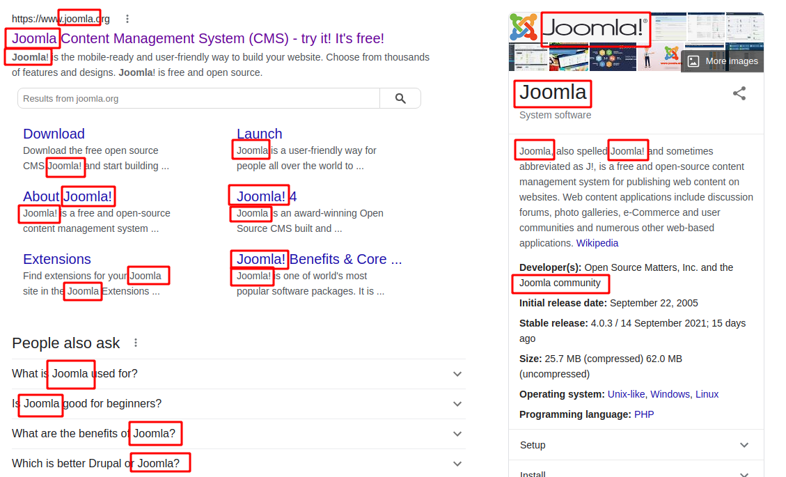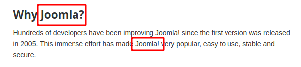 So this in fact means, that "Joomla" is not a trademark and in fact not protected. BTW In this case, I don't care about grammar, or the annoyance of someone who doesn't use an exclamation point. It's the other way around. The rules for using both variants are so complicated that we can't be surprised if someone doesn't follow them. Because although only the exclamation mark variant is protected, in some cases the non-exclamation mark variant is recommended, and in some cases even grammar won't allow the exclamation mark. And that's where I see the problem. Having a protected name where the grammar doesn't allow you to use it is not a happy name choice. |