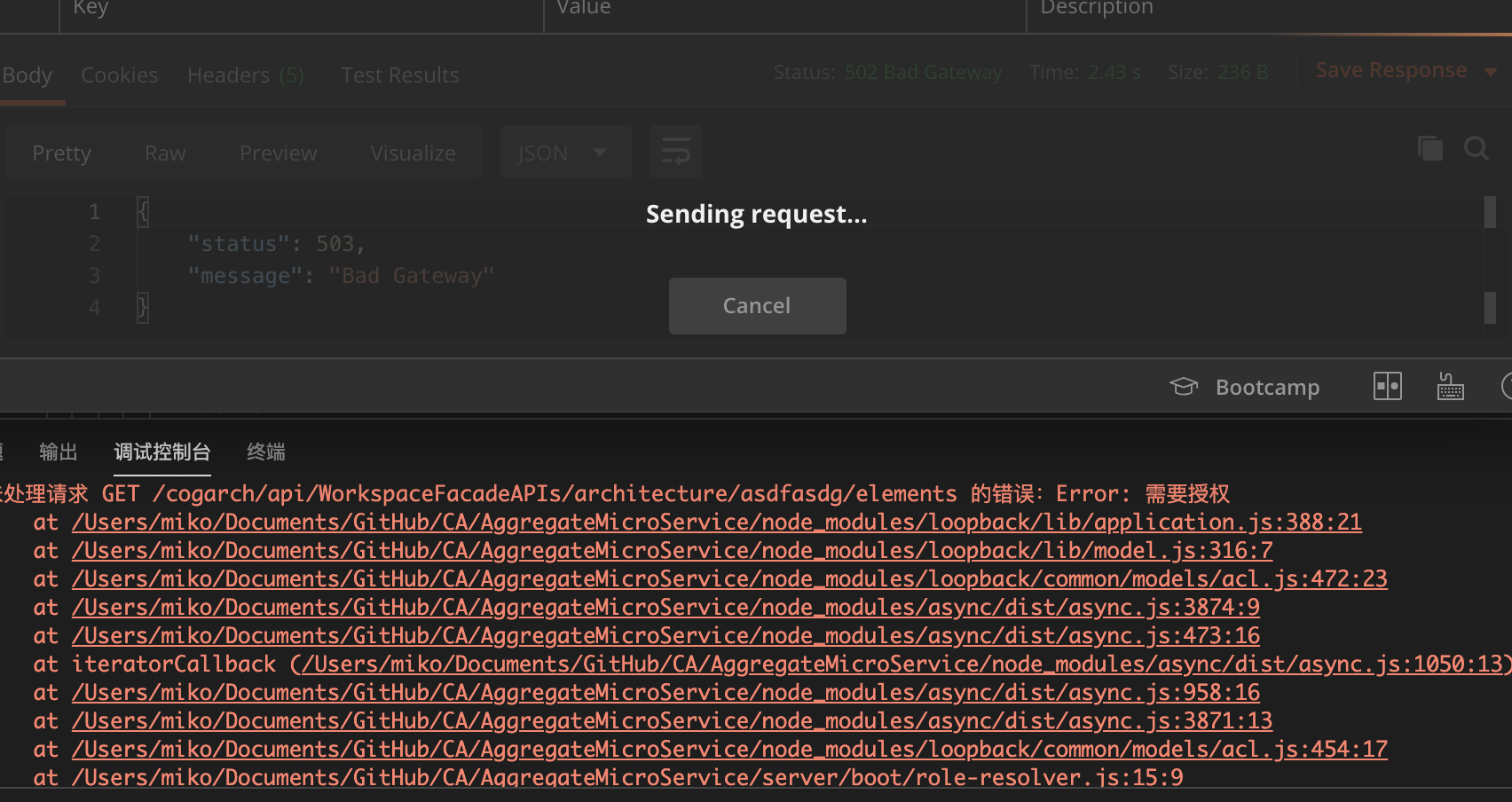 I tested in postman, the service already returned 401 but postman is still waiting for response.