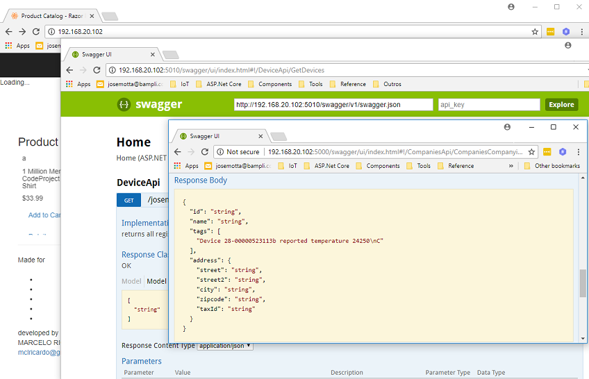 There are a couple ASP.NET Core Web APIs listening to ports 5000 and 5010, each one related to a different swagger file. The Web UI is running on port 80, although the activation is not shown above.