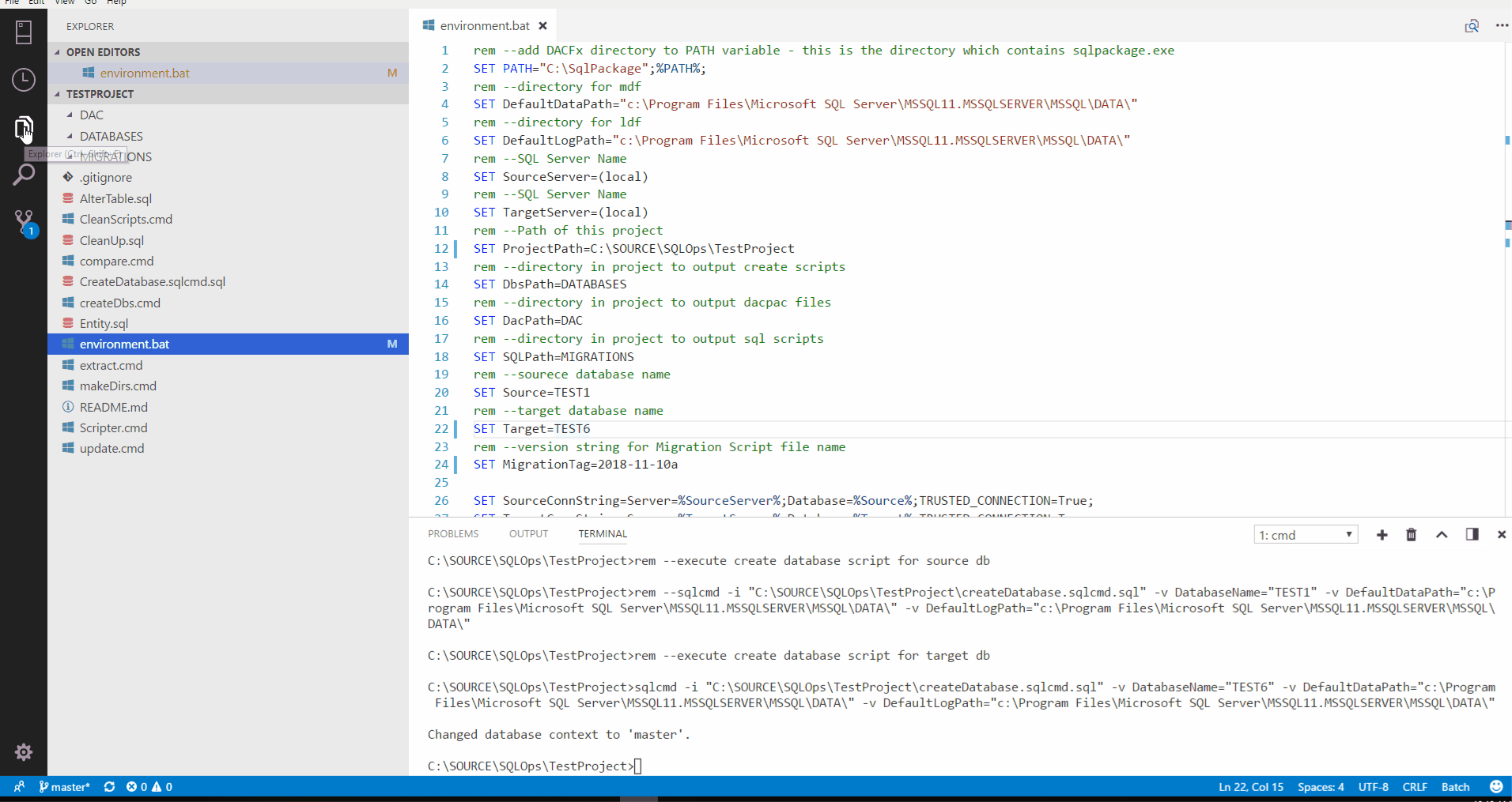 Hint: Don't forget to change MigrationTag variable in environment.bat between each compare or it will overwrite the prior delta script.