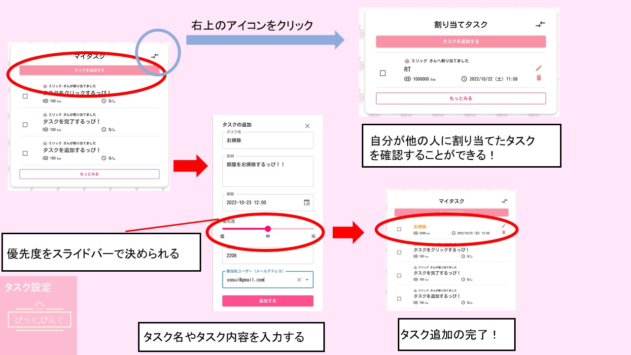 - フレンド間でタスク受注、報酬を送り合う機能