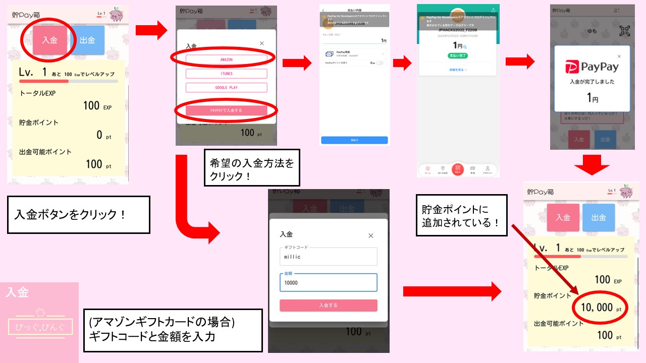 ※PayPayによる入金は、専用のPayPayアカウントへログイン時のみ動作します。動作確認の場合は、Slack等にてご連絡ください。