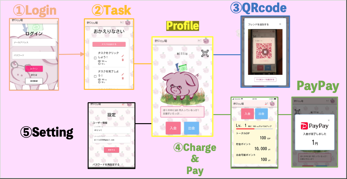- PayPayやAmazonギフトコードなどの外部サービスと連携することで入出金の煩雑さ減らした。