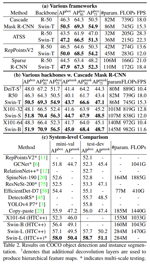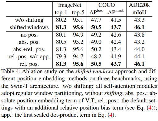 image size = 224x224/ patch size = 4x4 / window size = 7x7/shift size = 0
