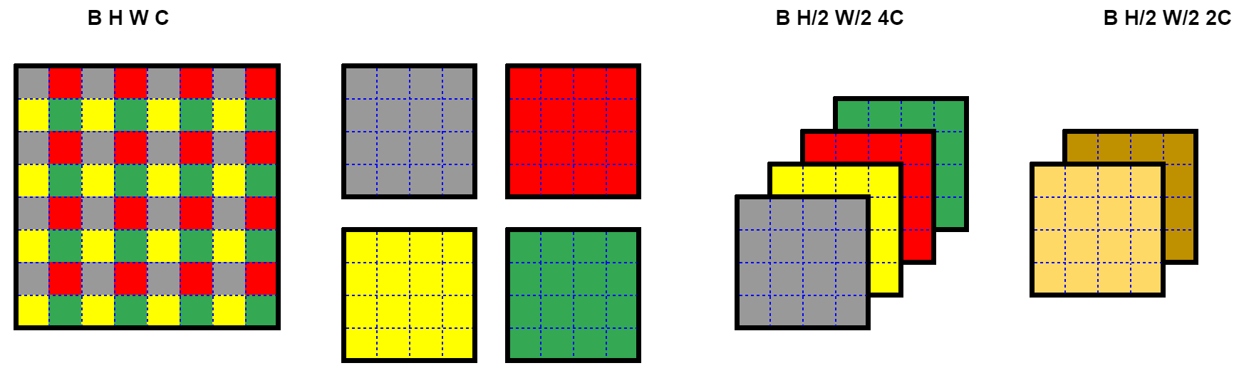 B H W C ==> B H/2 W/2 4*C