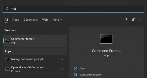Open a command prompt by searching 'cmd'.