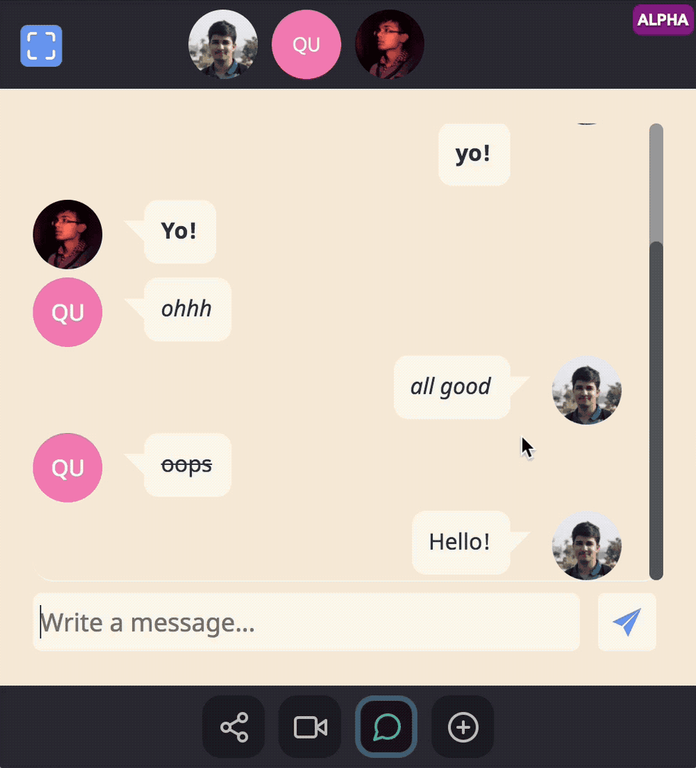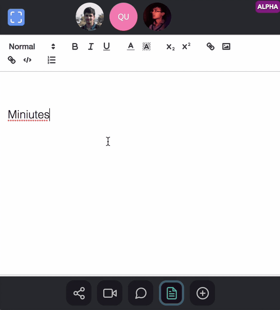 Code editor for quick snippets. Synced realtime between all participants