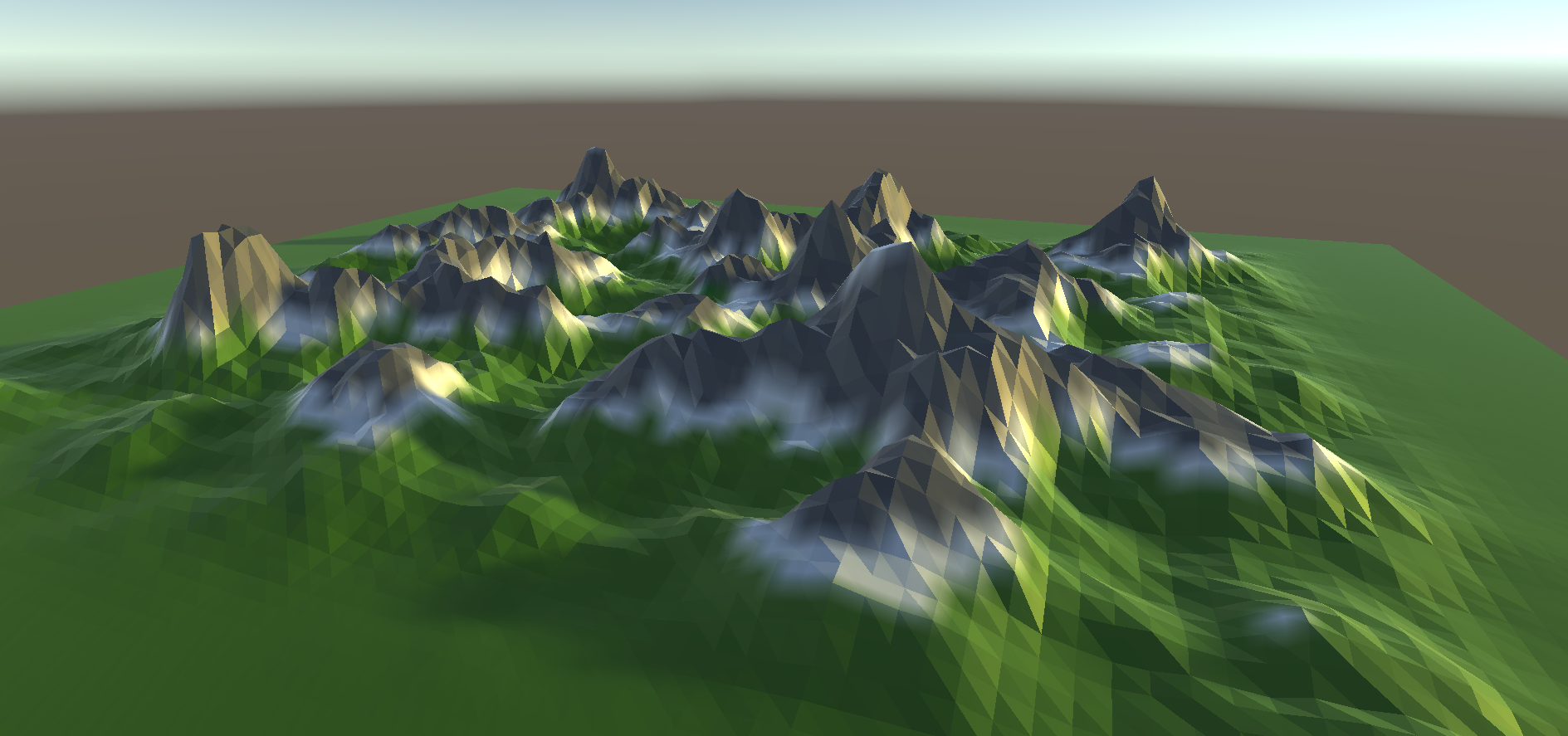 This project implements an editor extension for Unity to create Low Poly Terrains. It is still under development, but it works quite good. Currently, the built-in terrain editor of Unity does only support smooth surfaces. This tool will recreate Unity's terrain editor for procedural and manual terrain low-poly terrain generation and editing.