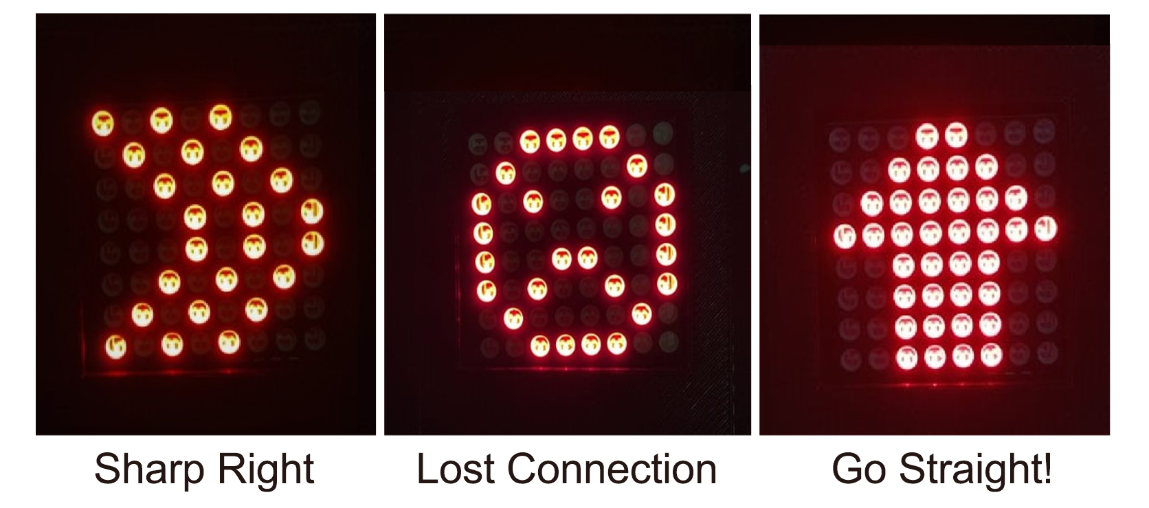 These are few examples of the animations that we made for various commands on LED 8x8 Matrix.