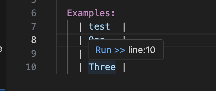 Example row hover — hover over an Examples data row to see
