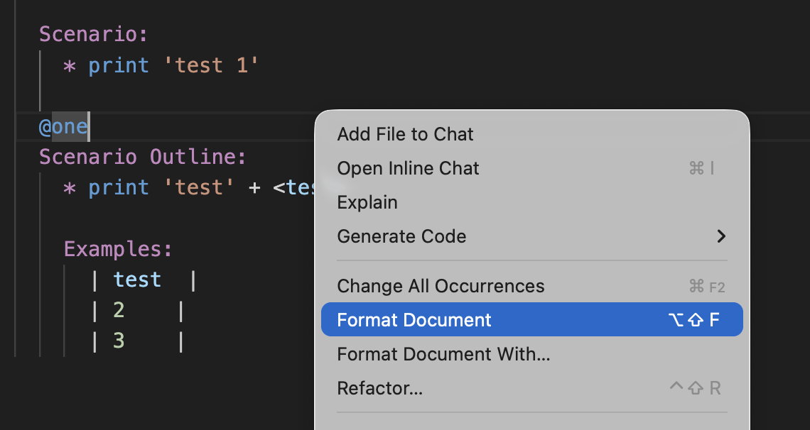 - Better Formatter - Karate syntax coloring and inline JS and Examples tables parsing re-written from scratch