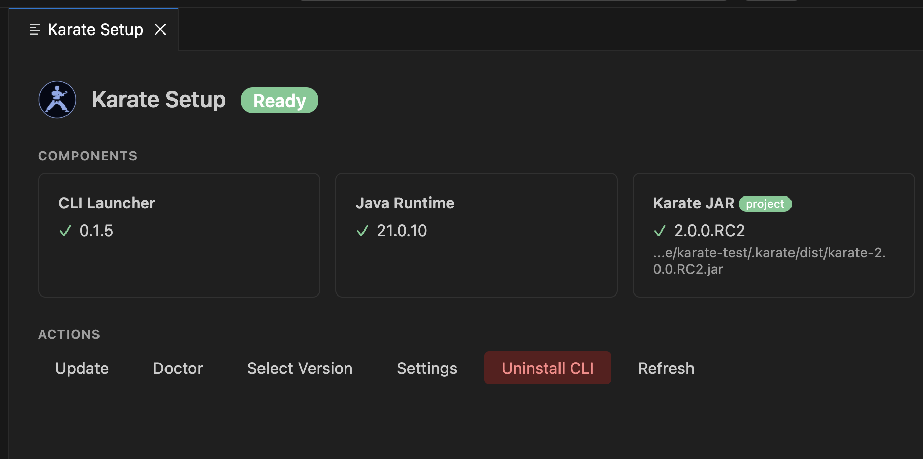 CLI not found: Run Karate: Setup to install the CLI, or set