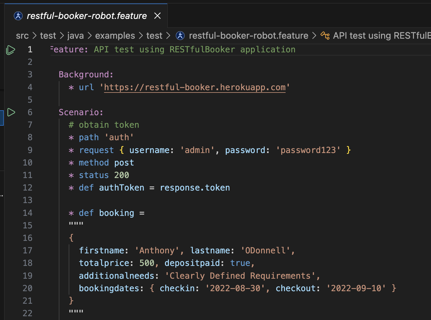 .featurefile — play buttons appear in the gutter - Press Cmd+F5 (macOS) or Ctrl+F5 (Windows/Linux) to run