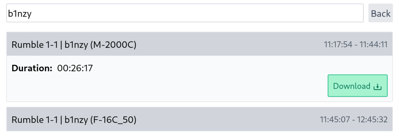 Lardoon comes with a web UI that displays a list of all imported replays, and allows you to view individual flight tracks within those replays. Additionally Lardoon can quickly trim TacView files to only the specific portion related to a given flight, reducing ACMI file/download size greatly.
