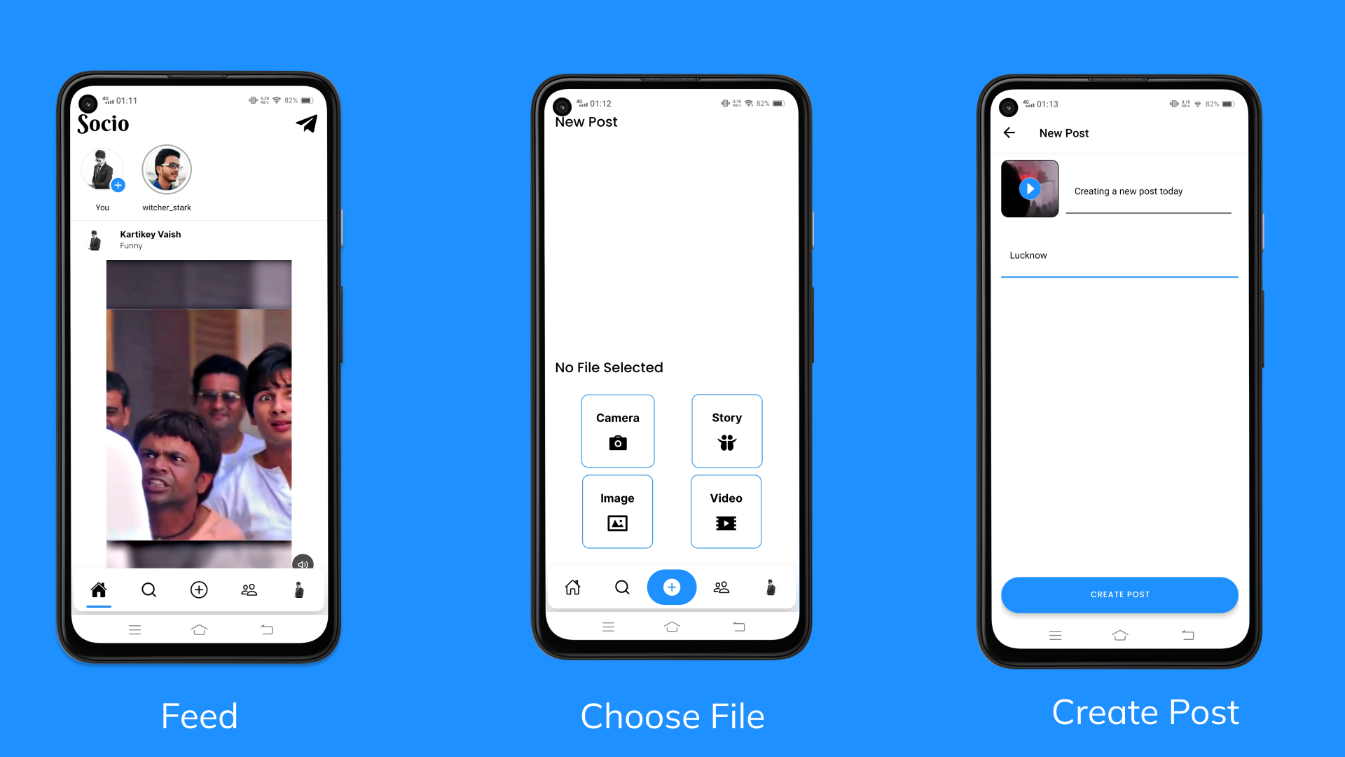 Socio is a social networking platform where users can pictures and videos as Posts with the world. Users can chat with each other through real time.
