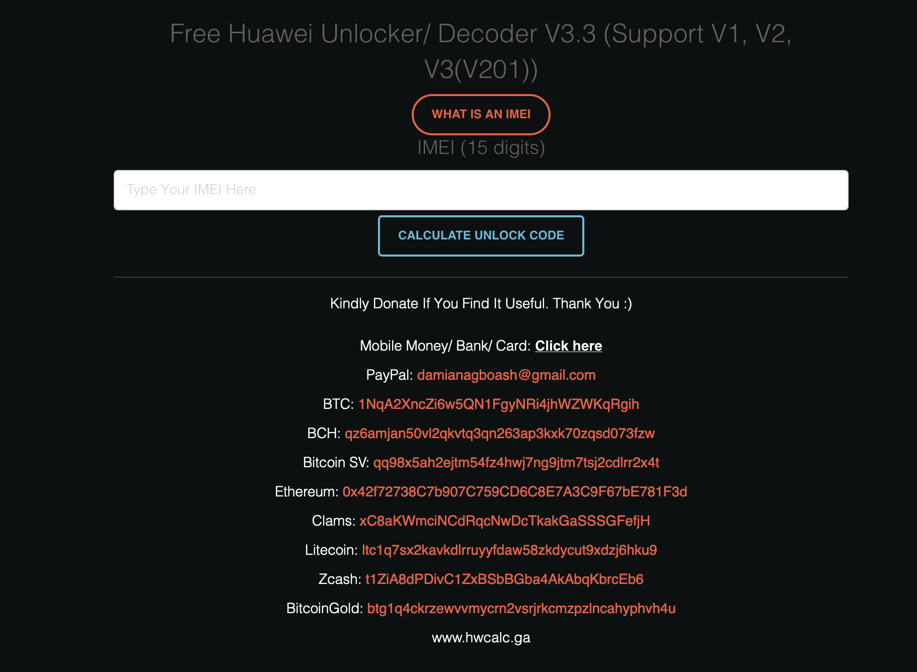 huaweiv3calculator Calculate the unlock code for huawei devices 3G/4G v1, v2, v3/v201 Note: Most 4G devices may not be 100% But for 3G devices. 100% can unlock