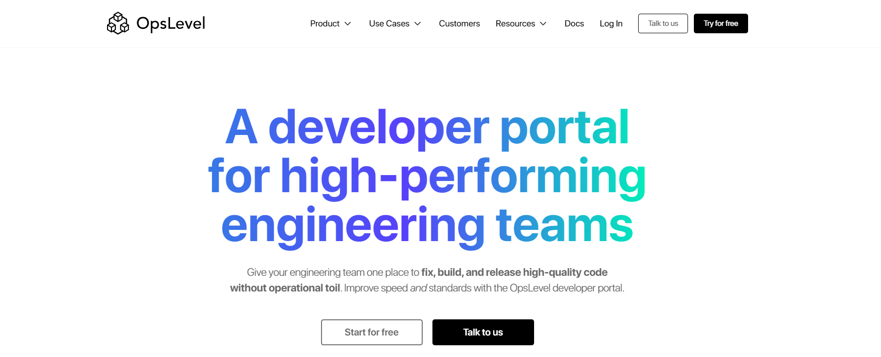 OpsLevel is a developer portal designed to enhance the efficiency and standards of high-performing engineering teams. The portal provides a centralized location for cataloging all microservices, systems, teams, and tools, which offers visibility into the entire architecture at a glance.