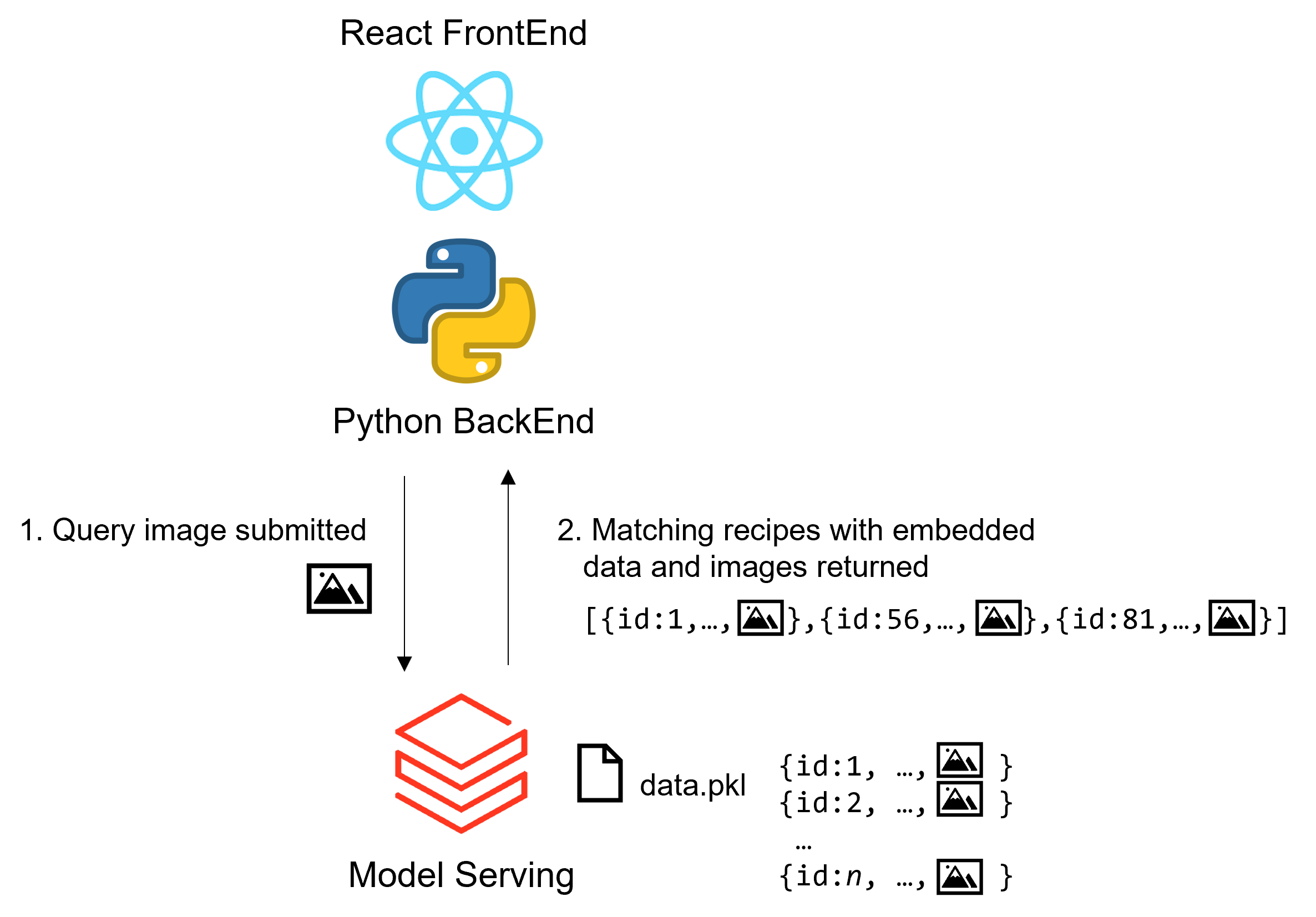The Databricks components are available as three notebooks in the model_and_data_prep folder. These notebooks process the images and recipe data associated with the application and package these assets with the model for deployment to Databricks model serving.
