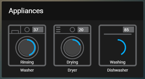 My "Appliances" card. Shows appliance status, time remaining, and progress.