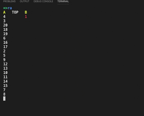 ra : rotate a - shift up all elements of stack a by 1. The first element becomes