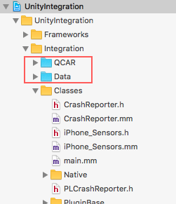 Drag and drop inside this group Classes and Libraries folders from previously Unity-generated iOS project.