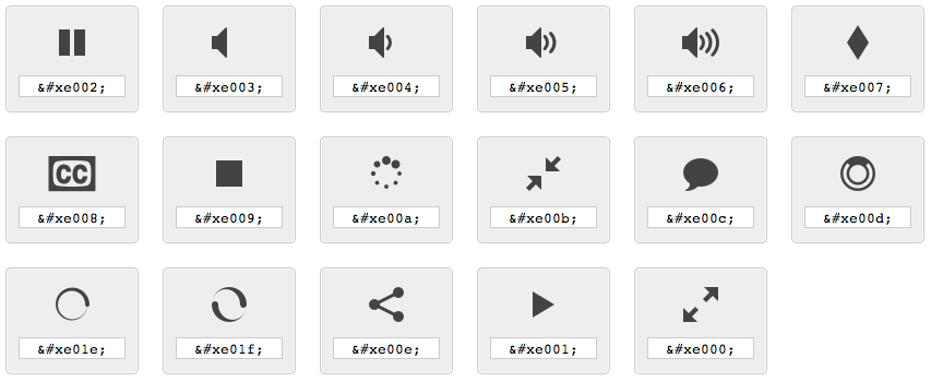 All of the icons are available as variables in the LESS source, making it easy to replace icons (such as the loading spinner). The easiest way to try this out is by using the player skin designer.